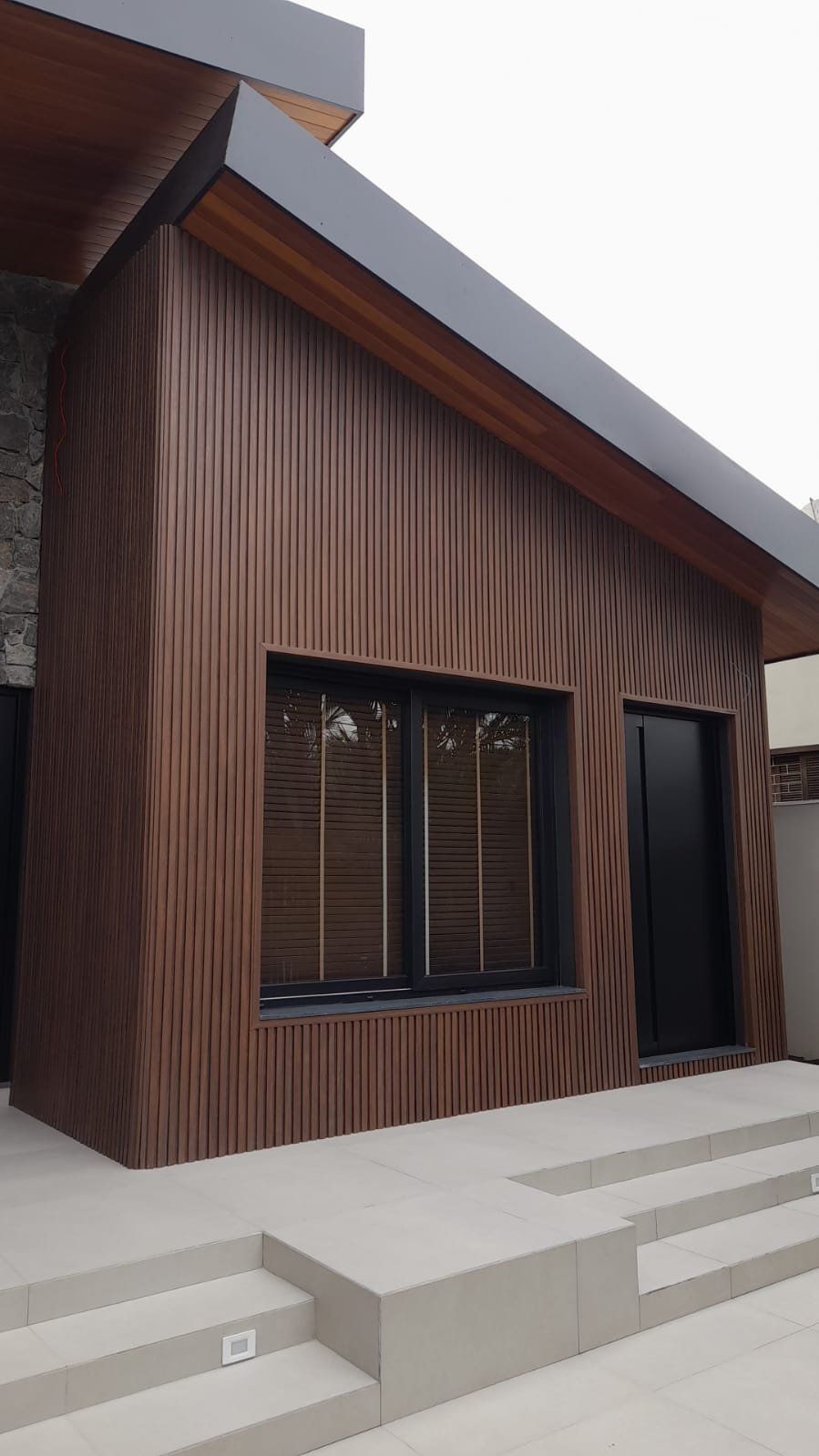 Фасадні панелі з ДПК гармонійно виглядають і на сучасних приватних будинках,